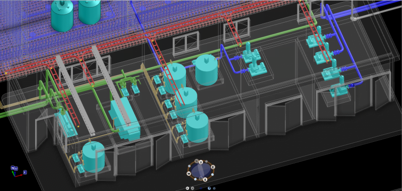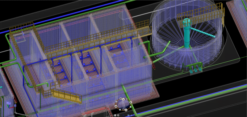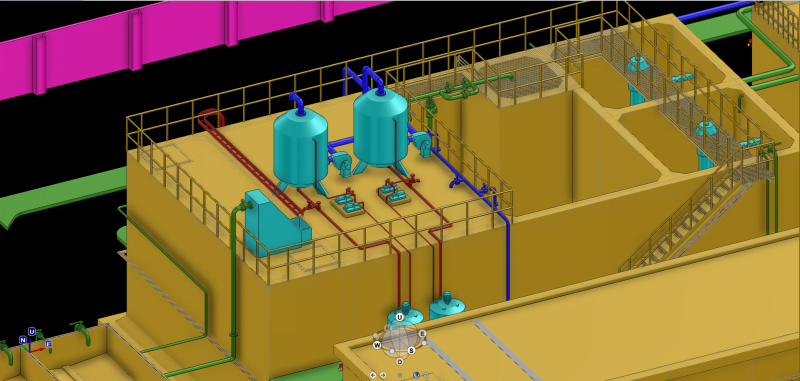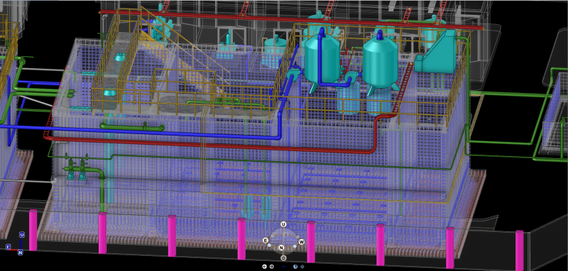 The Waste Water Treatment Plant in Cam Le District, Da Nang City is modeled on AVEVA E3D software with various items, structure, reinforced steel for concrete, working floor system, chemical tank. , process tank, pipeline, electrical system, rack, hanging to ensure load-bearing for the pipe system, cable ladder, etc.(Join the PEMOSE COURSE to gain knowledge about AVEVA E3D).