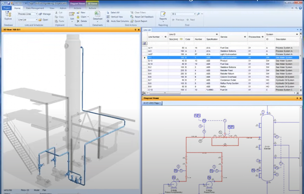 AVEVA Diagrams™ is an intelligent diagramming system for P&IDs, ducting schematics and similar diagrams. It enables the continuous saving of diagram objects directly to the AVEVA model database, as a diagram is created or modified. This technology delivers exceptional integration with AVEVA’s 3D design products and AVEVA Engineering via shared administration, report generation and data management capabilities.